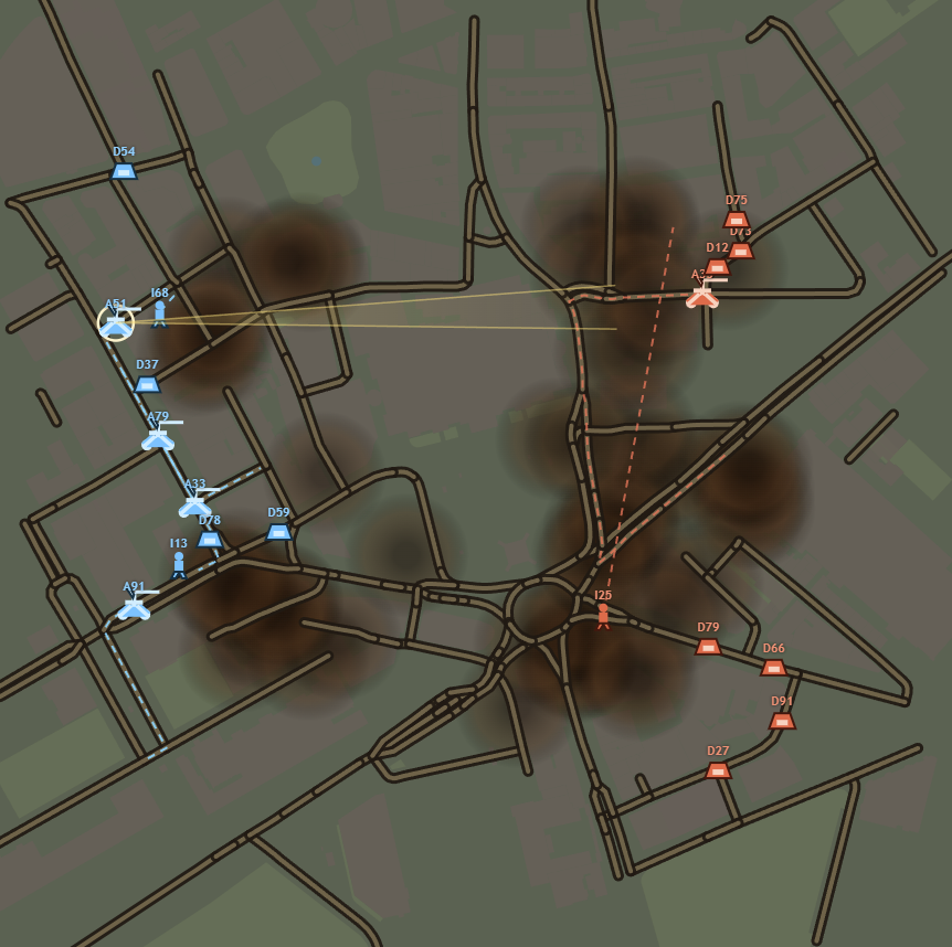 A grimy turn-based artillery duel on a live street map. Search a place, muster a force, issue orders, and watch both sides move then fire.