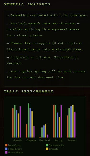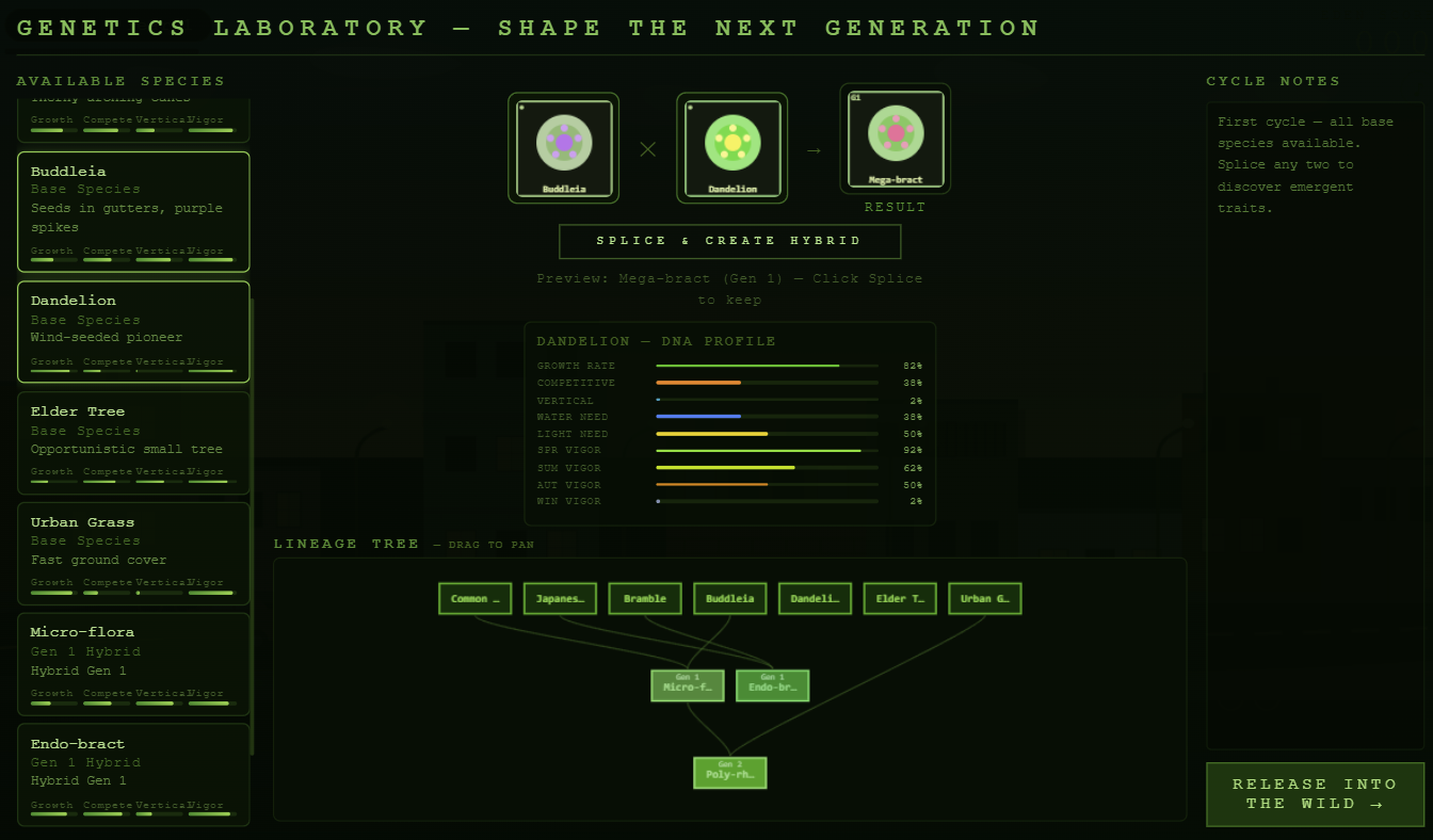These cycles are visually represented by the player's verdant creations overrunning the urban landscape, and the gameplay arc is whether those creations survive and thrive.